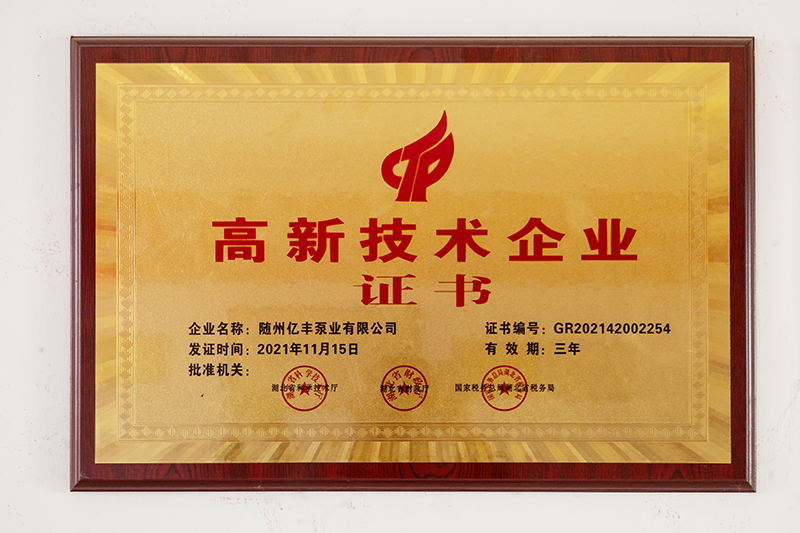 隨州億豐泵業有限公司位于隨州市曾都經濟開發區,建筑面積15000平方米,公司現有大學文憑以上的35人、技術人員25人(高級職稱5人、中級職稱以上27人)。公司自成立以來先后獲得高新技術企業、“專精特新”小巨人企業、隱形冠軍、著名商標等一系列榮譽。
